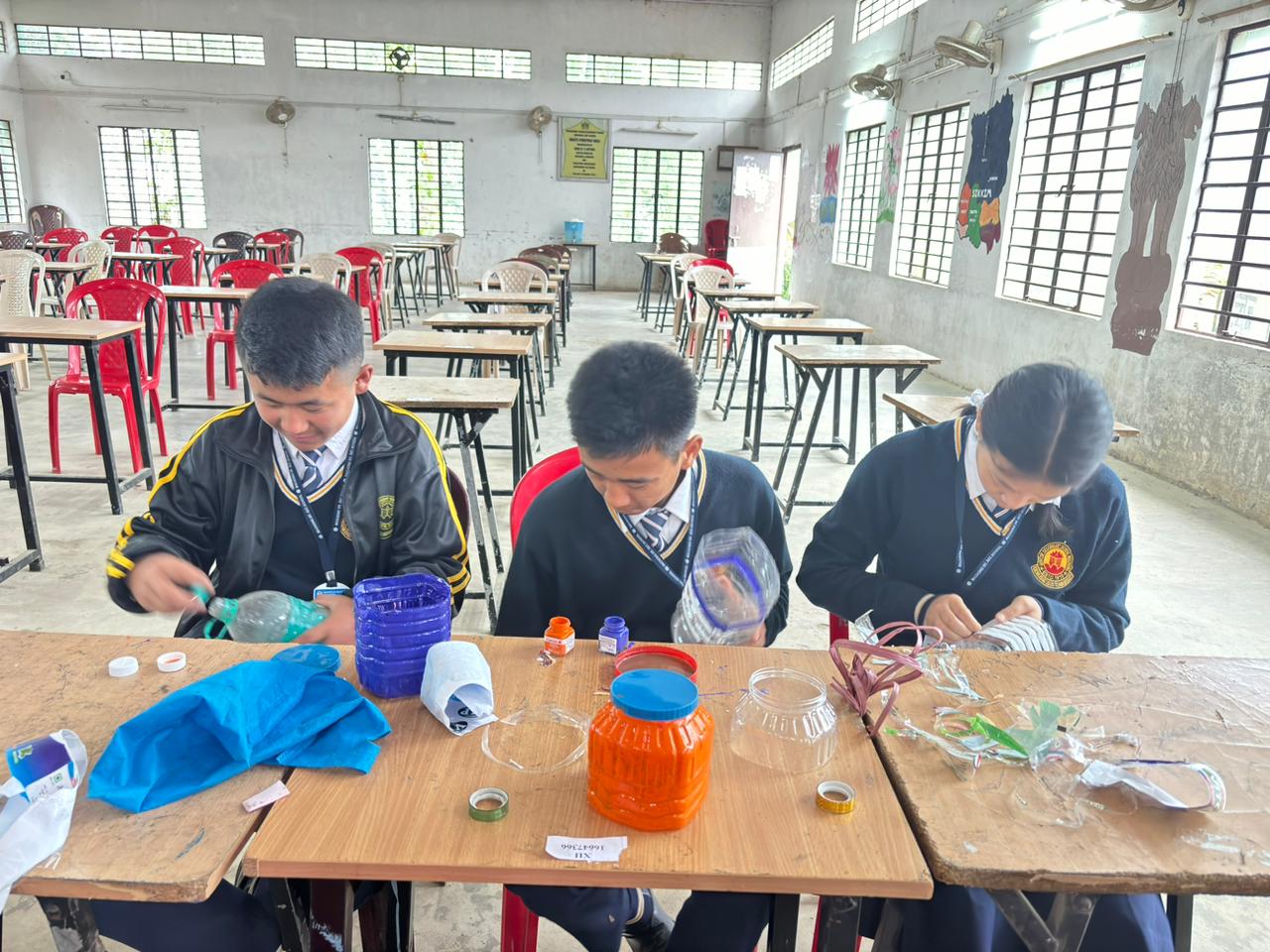 SANITATION CLUB MEMBERS USING WATED INTO A USEFUL ITEM